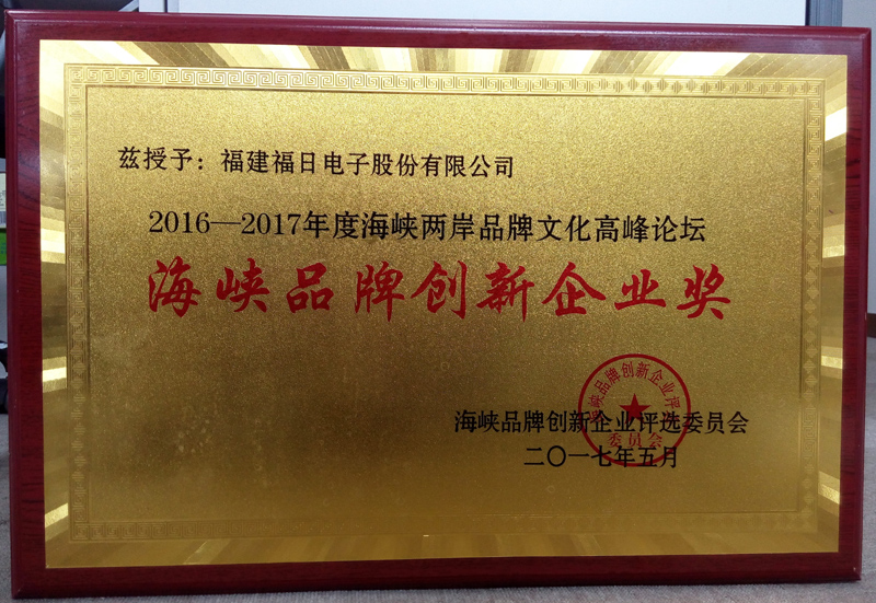 2017年5月18日,福日電子應邀參加第七屆海峽兩岸品牌文化高峰論壇。論壇上,福日電子被海峽品牌創(chuàng)新企業(yè)評選委員會授予2016-2017年度海峽品牌創(chuàng)新企業(yè)獎。