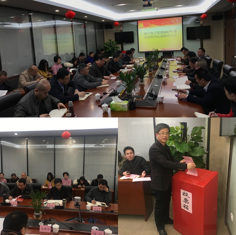 2018年1月25日下午,福日電子黨委召開(kāi)2017年度黨組織書(shū)記抓基層黨建工作述職評(píng)議會(huì),公司黨委書(shū)記李震主持會(huì)議。會(huì)上福日實(shí)業(yè)公司黨支部、福順微電子公司黨支部、光電事業(yè)部黨支部、機(jī)關(guān)黨支部等6個(gè)所屬黨組織書(shū)記,圍繞一年來(lái)抓基層黨建工作取得的成效、今后努力方向等方面分別作了現(xiàn)場(chǎng)述職或書(shū)面述職。公司領(lǐng)導(dǎo)班子成員、所屬企業(yè)、事業(yè)部黨支部書(shū)記及基層黨員干部職工代表30余人到會(huì)聽(tīng)取了述職并進(jìn)行了認(rèn)真評(píng)議。