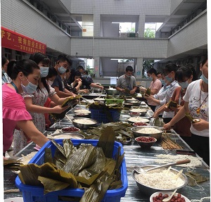 活動現(xiàn)場,糯米、紅棗、粽葉等材料擺放在桌子上。經(jīng)驗豐富的員工向身邊的新手教授包粽子的方法,粽葉重疊再折疊,卷成漏斗狀后,用糯米、紅棗等充實壓緊,再用繩一繞一捆,一個個精美的粽子就誕生了。本次活動歷時2小時,參加活動的員工手工制作了1000多個粽子。包好的粽子在公司食堂蒸熟后,公司人資部工作人員負責(zé)分裝粽子,總經(jīng)辦相關(guān)負責(zé)人分別走到各部門、倉庫、宿舍等,將粽子分發(fā)到員工手上,讓員工充分感受到企業(yè)的關(guān)懷。