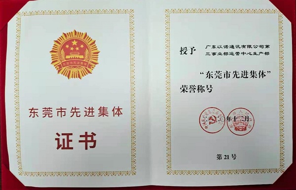 2020年12月25日,2020年?yáng)|莞市勞動(dòng)模范、先進(jìn)工作者和先進(jìn)集體表彰大會(huì)在該市會(huì)議大廈舉行,大會(huì)表彰了全市54名勞模、6名先進(jìn)工作者以及30個(gè)先進(jìn)集體,福日電子二級(jí)控股子公司廣東以諾通訊有限公司第三事業(yè)部運(yùn)營(yíng)中心生產(chǎn)部被授予“東莞市先進(jìn)集體”榮譽(yù)稱號(hào)。該部門通過(guò)成立員工關(guān)愛(ài)委員會(huì)、制定“杰出工匠”“百夫長(zhǎng)”方案、落實(shí)疫情防控工作、設(shè)立員工問(wèn)題反饋信箱、組織各類文體活動(dòng)等舉措,推動(dòng)部門各項(xiàng)工作順利開(kāi)展,為公司做強(qiáng)做優(yōu)做大通訊產(chǎn)業(yè)貢獻(xiàn)力量。