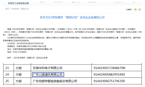 近日,東莞市倍增計(jì)劃工作領(lǐng)導(dǎo)小組辦公室發(fā)布了2021年東莞市“倍增計(jì)劃”試點(diǎn)企業(yè)名單,福日電子二級控股子公司廣東以諾通訊有限公司入選該名單。此次認(rèn)定的“倍增計(jì)劃”試點(diǎn)企業(yè)重點(diǎn)聚焦在東莞市制造業(yè)企業(yè)、生產(chǎn)性服務(wù)業(yè)企業(yè)、軟件與信息技術(shù)服務(wù)業(yè)企業(yè)。