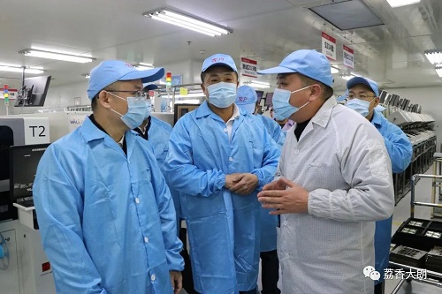 萬卓培一行在大朗鎮(zhèn)相關(guān)負(fù)責(zé)人的陪同下,前往福日電子二級(jí)控股子公司廣東以諾通訊有限公司開展調(diào)研,深入企業(yè)車間,了解企業(yè)生產(chǎn)情況以及未來發(fā)展規(guī)劃,并就企業(yè)提出的生產(chǎn)經(jīng)營中問題和困難進(jìn)行了交流。