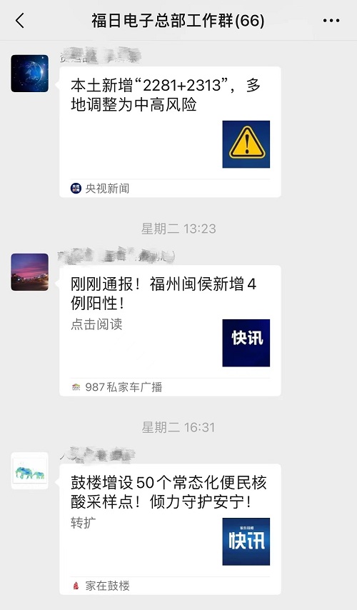 本部工作群內(nèi)每日更新疫情最新動(dòng)態(tài),宣傳疫情防控政策、提供核酸檢測(cè)相關(guān)信息,及時(shí)答疑解惑;公司紀(jì)檢部門第一時(shí)間貫徹落實(shí)集團(tuán)部署,督促全員嚴(yán)格落實(shí)疫情防控工作要求,做到企業(yè)所在地疫情防控指揮部發(fā)布公告要求開展全員核酸檢測(cè)的,員工“應(yīng)檢盡檢”;在電子信息集團(tuán)系統(tǒng)率先發(fā)布致全體員工的倡議書,發(fā)出眾志成城、共度時(shí)艱的動(dòng)員令,要求提高思想認(rèn)識(shí)、加強(qiáng)組織保障、發(fā)揮黨組織作用,切實(shí)筑牢疫情防控防線。