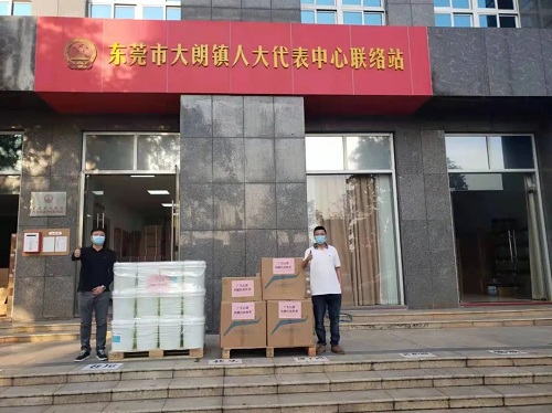 在東莞市大朗鎮(zhèn),一場(chǎng)愛心接力也在上演。2月27日,東莞市企業(yè)家范仁強(qiáng)向以諾通訊贈(zèng)送4噸84消毒液、3000瓶酒精、5萬(wàn)個(gè)醫(yī)用口罩等大批防疫物資。為支持大朗鎮(zhèn)一線疫情防控工作,以諾通訊將愛心接力,又將這批防疫物資部分轉(zhuǎn)贈(zèng)給大朗鎮(zhèn)經(jīng)信局、資產(chǎn)經(jīng)營(yíng)公司、黃草朗派出所、松木山村委、水平村委等相關(guān)單位,共筑疫情防控堅(jiān)實(shí)后盾。