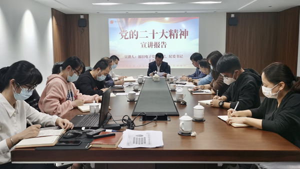 福日電子宣講團成員分別深入到各聯(lián)系企業(yè),帶領企業(yè)職工學習黨的二十大精神并作《以黨的二十大精神為指引 開啟高質(zhì)量發(fā)展新征程》專題黨課,全面領悟黨的二十大提出的新思想、新觀點、新論斷。宣講重點圍繞黨的二十大主題和主要成果、過去5年的工作和新時代10年的偉大變革、馬克思主義中國化時代化、中國式現(xiàn)代化、全面建設社會主義現(xiàn)代化國家的目標任務和堅持黨的全面領導、全面從嚴治黨等六個方面,并結(jié)合成員企業(yè)所在的廣東省與福建省十年經(jīng)濟發(fā)展實際,對黨的二十大精神進行了全面系統(tǒng)的解讀,讓企業(yè)職工對二十大精神有了更深入的理解。