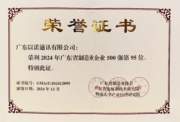 “廣東省制造業(yè)企業(yè)500強”榜單由廣東省制造業(yè)協(xié)會聯(lián)合相關(guān)機構(gòu)發(fā)布,旨在貫徹落實黨的二十大精神和高質(zhì)量發(fā)展要求,通過嚴格的數(shù)據(jù)采集與專家評審,全面反映廣東制造業(yè)的競爭力與發(fā)展趨勢。榜單自2013年啟動以來已連續(xù)發(fā)布12年,是政府政策制定和行業(yè)前沿研究的重要參考。以諾通訊憑借持續(xù)創(chuàng)新和穩(wěn)健發(fā)展躋身前百強,這一榮譽是對企業(yè)技術(shù)實力和行業(yè)貢獻的高度肯定。